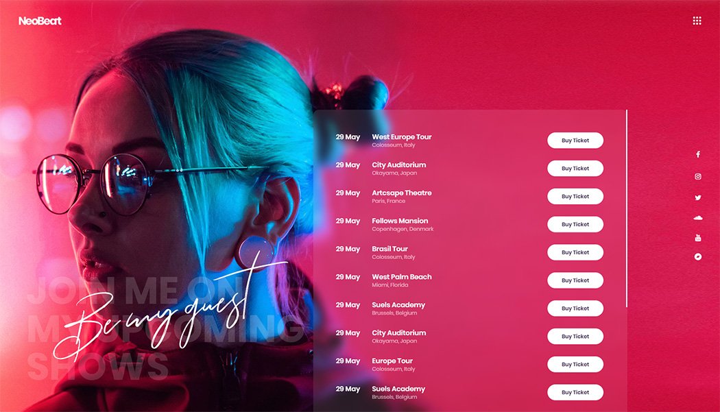 NeoBeat lets you easily display your upcoming shows & tour dates with ticket purchase links, create amazing event announcements and much more.