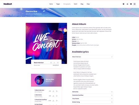 Tons of beautiful elements for displaying albums, artist & tours